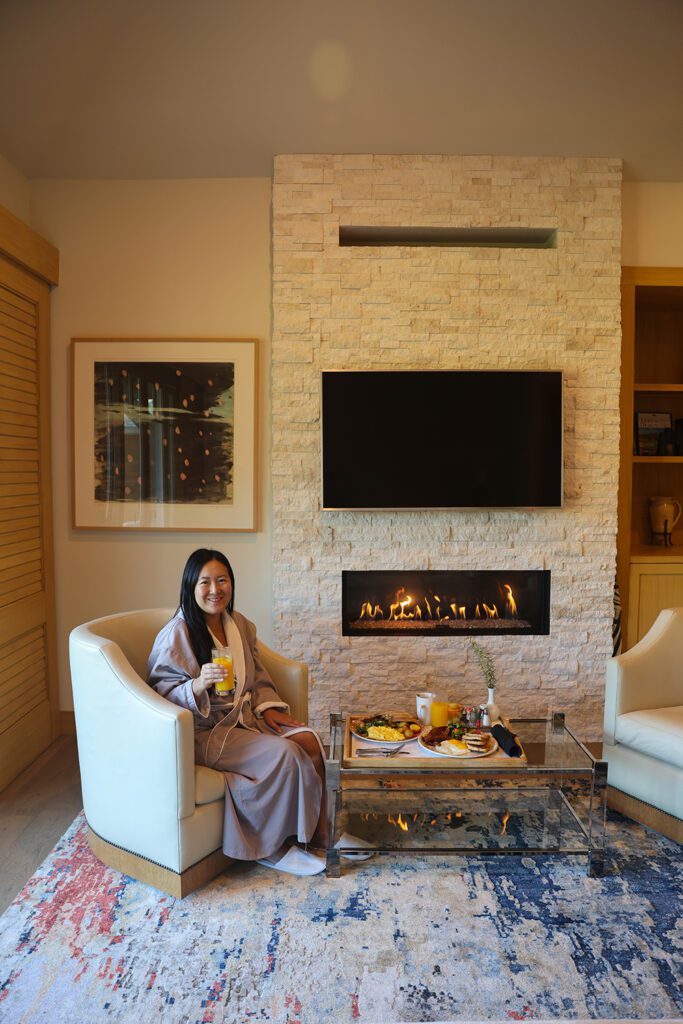 Step inside your private sanctuary, where every detail is meticulously crafted for your comfort. Each room features a plush California king bed, a goose-down comforter that promises sweet dreams, and breathtaking, panoramic views overlooking the championship golf course and valley. Unique artwork and a crackling fireplace add a touch of residential comfort, making you feel right at home. Unwind in your spacious, spa-like bathroom featuring separate showers and inviting soak-in tubs. 🛁